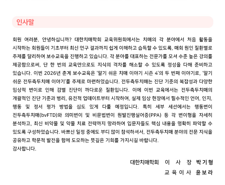 2026 대한치매학회 춘계 보수교육 안내