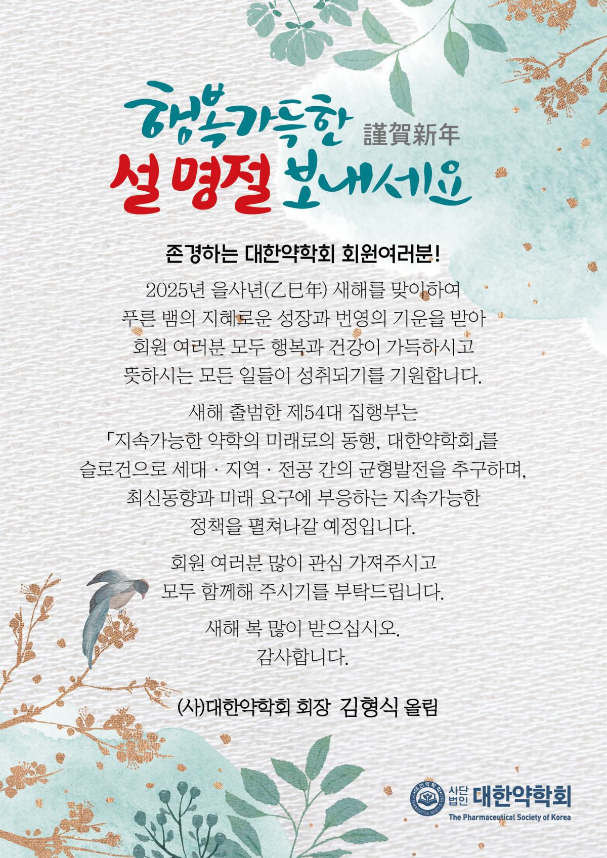 대한약학회는 악성프로그램에 대해 강력히 법적 대응합니다.본 웹사이트에 게시된 이메일 주소가 전자우편 수집 프로그램이나 그 밖의 기술 적 장치를 이용하여 무단으로 수집되는 것을 거부하며, 이를 위반시 정보통신망 법에 의해 형사 처벌됨을 유념하시기 바랍니다.